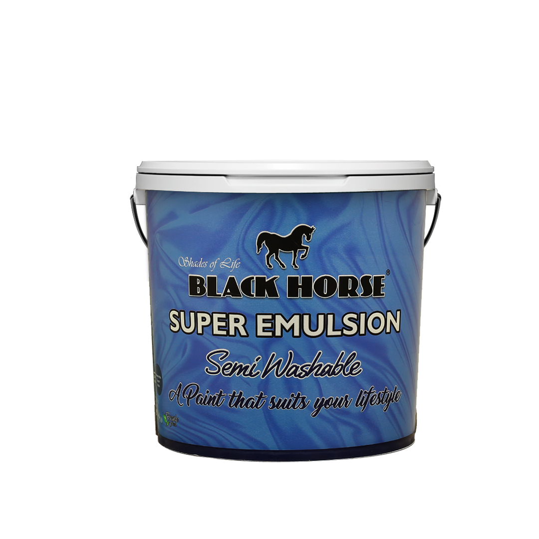 Black Horse Super Emulsion Semi Washable is a good quality PVA copolymer based interior emulsion with spreading rate, tough and durable film. It exhibits excellent brush ability and recoat ability. On application, it gives smooth luxury finish. It is suitable for decorative smooth finish for interior masonry surfaces like concrete, plaster, brick, wood, gypsum, asbestos, chip board and wood.
